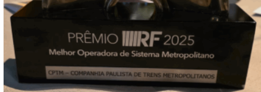 Divulgação. Troféu do Prêmio RF 2025 recebido pela CPTM na categoria Melhor Operadora.